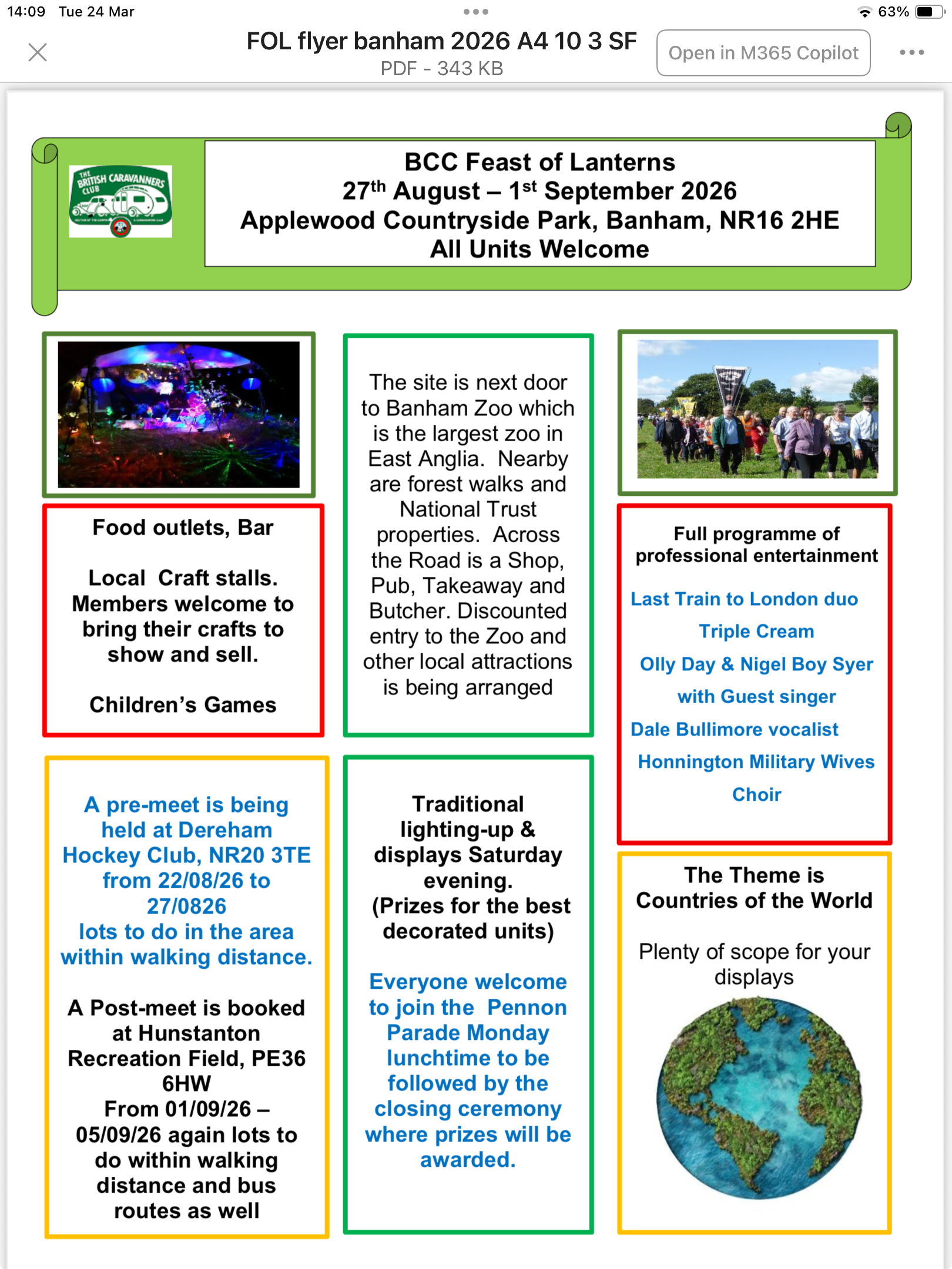 Booking is now available either on line or download a paper ve